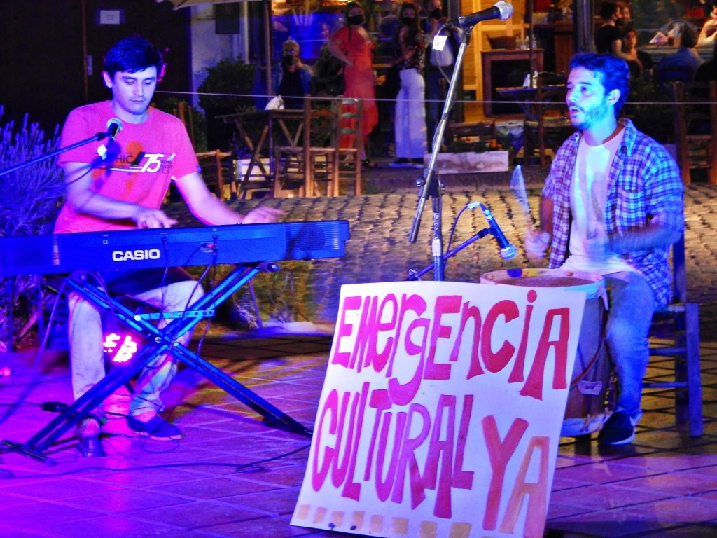 Actores, músicos, artistas plásticos, fotógrafos y más trabajadores del arte de nuestra localidad organizaron el sábado una peña emergente en la plaza principal. Se expusieron pinturas, fotografías y producciones audiovisuales para que los vecinos caminen y recorran el espacio; además de varios números musicales y teatrales. El evento cultural tenía una consigna y era clara: “emergencia cultural ya”.
