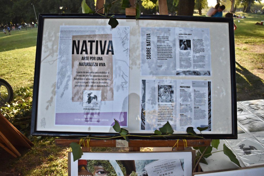 El domingo 7 de marzo, en el marco de FESTIVA, el festival anual de mujeres y diversidades artistas de San Antonio de Areco, se presentó la muestra “NATIVA: Arte por una naturaleza viva”, que propuso un espacio de encuentro para visibilizar conexiones con la naturaleza a través disciplinas artísticas – como la pintura, el dibujo, la fotografía, la ilustración y la escritura – y para contar historias de mujeres protectoras. Con el apoyo de Revista Minúscula, se produjo un fanzine en el que se presentó a las expositoras y se compartió una recolección de testimonios de protagonistas de diversas luchas y movimientos.