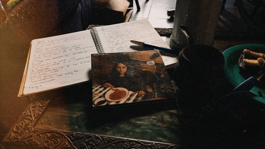 «La cuestión es que querían fotos de archivo y entre ellas estaba la de la niña que come unos frijoles con salsa, sobre un mantel, que finalmente fue la imagen de la tapa del disco. No recuerdo si esa chica era brasileña o ucraniana, pero sí sé que no era argentina (no fue una foto producida acá). La eligieron Andy y Claudio – aunque tal vez se la presentaron a Charly o a los cuatro y ahí recién dieron el visto bueno, no sé – y a mí me causaba mucha emoción que esa imagen, salida de ese lugar, fuera a convertirse en la foto de la tapa de un disco tan hermoso.