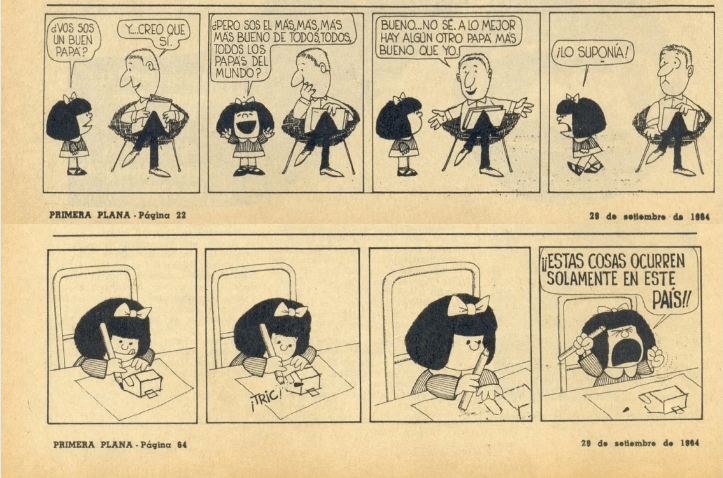 Durante nueve años las aventuras de Mafalda; Felipe; Miguelito; Libertad; Guille; Manolito y Susanita fueron parte de diferentes publicaciones gráficas y desde ahí empezaron a meterse lentamente en el día a día de miles de lectores a los que se puede reconocer cuando escuchamos “ya lo dijo Mafalda” o “como dice Miguelito” o “sos re Susanita”.