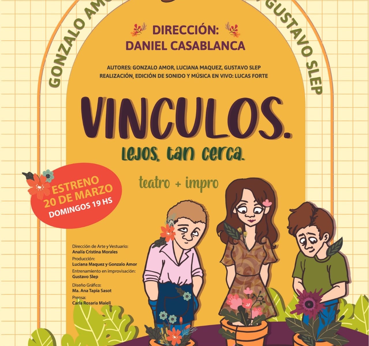 “Vínculos, lejos tan cerca”, la nueva obra de Gonzalo Amor, Gustavo Slep y Luciana Maquez, se estrenó el 20 de marzo en el teatro La Mueca. El texto, mezcla perfecta de improvisación, música en vivo y teatralidad, aborda una de las preguntas más difíciles de nuestros días: “¿cómo nos vinculamos con los otros?”. Luego del estreno, a sala llena, Minúscula charló con Luciana Maquez.