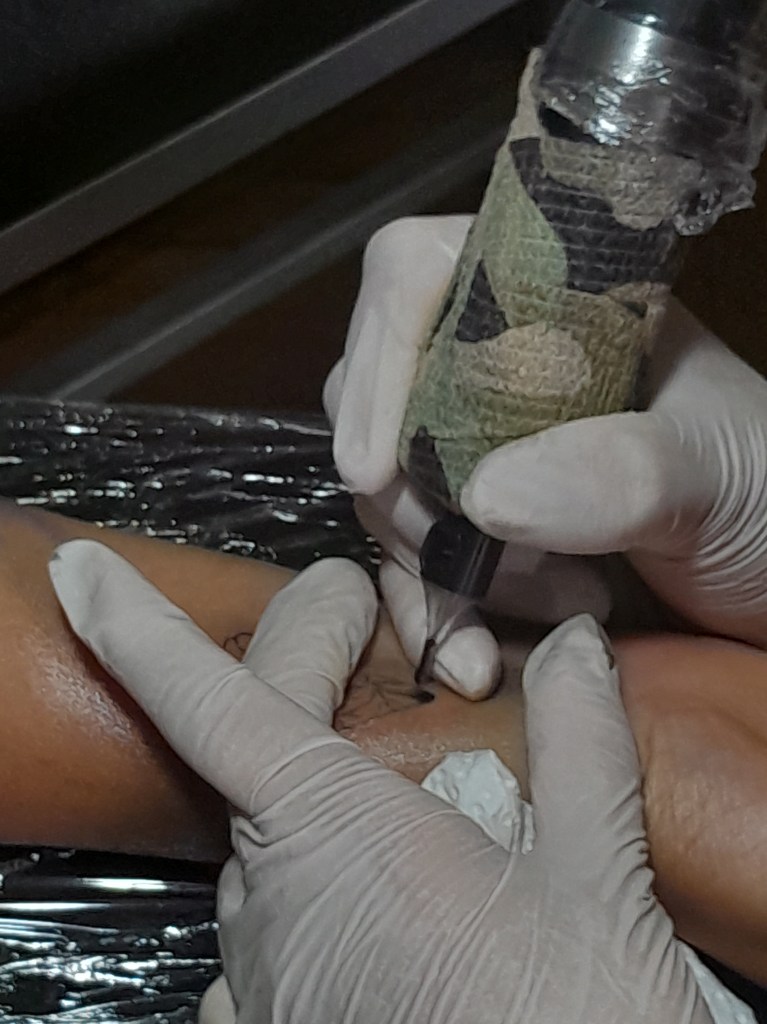 Por otro lado, cambió mucho mi forma de poner límites más claros para cuidar mi trabajo y el de otres; no hacer diseños que no sean de mi autoría o sin autorización, elegir mejores insumos para cuidar la piel de quien viene, cobrar lo que corresponde y no dudar del valor de mi trabajo. Tatuarse es una experiencia muy íntima y ambas personas debemos disfrutar del proceso.