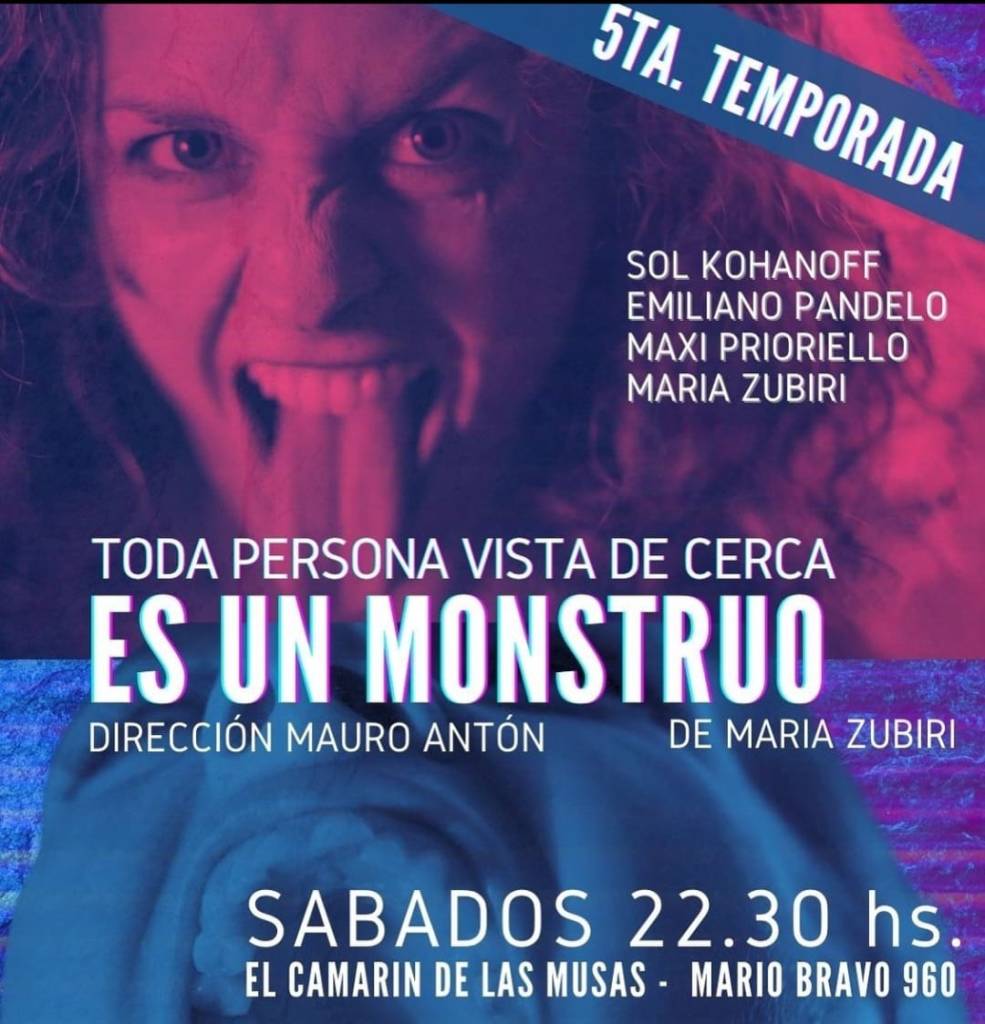 Los sábados a las 22:30 “Toda persona vista de cerca es un monstruo”, con Emiliano Pandelo, Maximiliano Prioriello y María Zubiri. Dirige Mauro Antón.