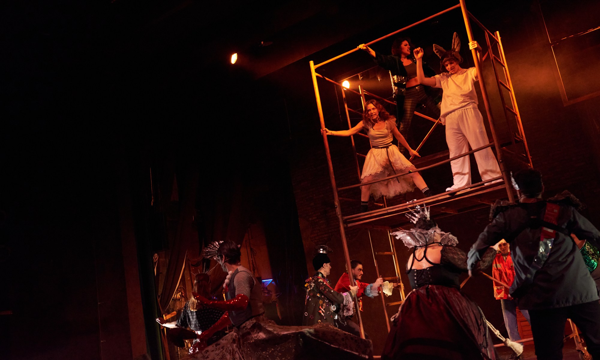 El mundo se derrumba en el exterior de un viejo teatro. Los sonidos del caos se cuelan por las ventanas y llegan al escenario en donde sobreviven un grupo de personas entre escombros, andamios y restos de utilería devenidos en un improvisado hospital de campaña.