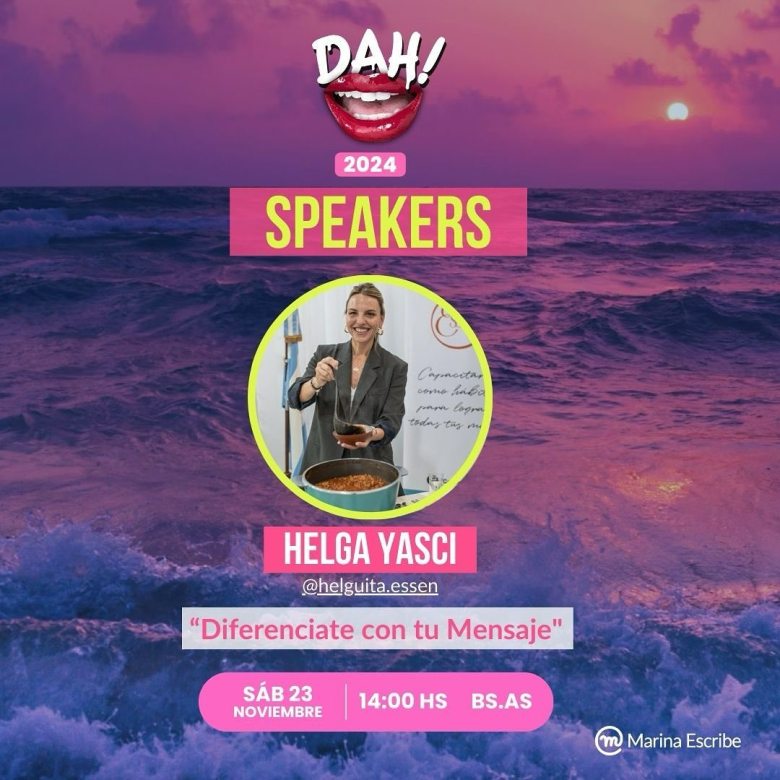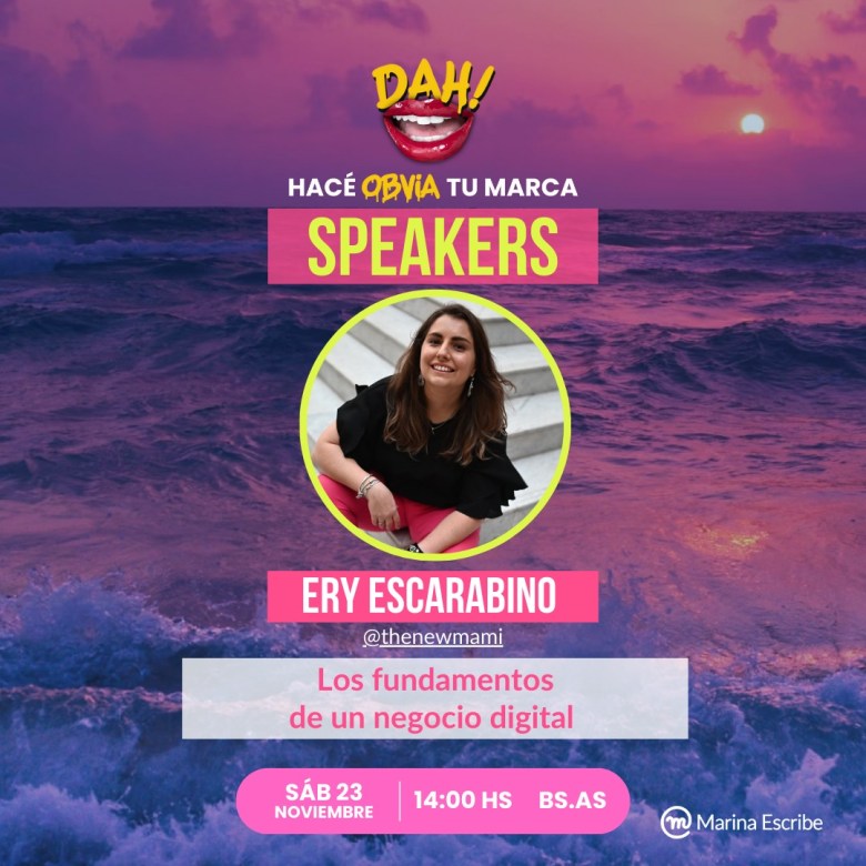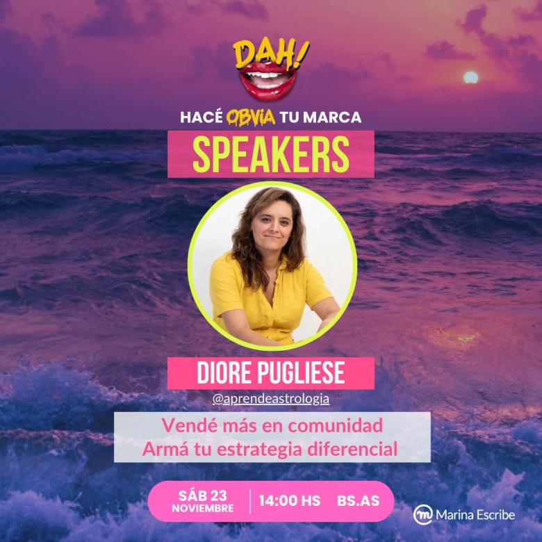 Otras de las speakers que van a hablar de estrategia son Diore Pugliese la creadora de Aprende Astrología y Ery Scarabino marketer y creadora de The New Mami. Finalmente, yo voy a estar estar cerrando el evento hablando de Mensaje.