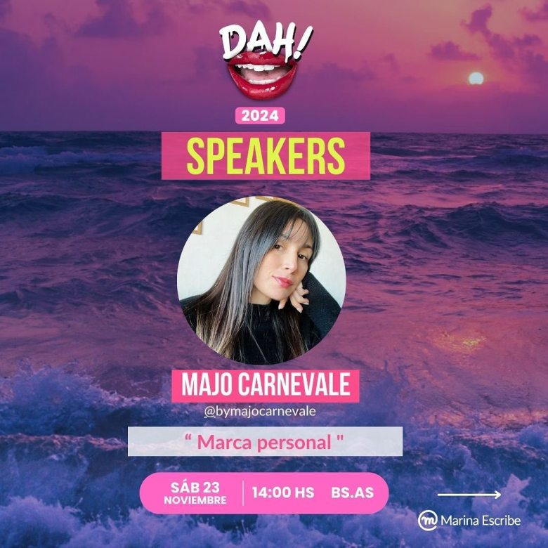 También va a estar Majo Carnevale , ella va a hablar de algo que me encanta que es cómo crear marcas personales auténticas. Me interesa explorar esa parte de la autenticidad. Lo interesante de Majo es que ella pasó por muchos negocios. Tuvo negocios físicos, tuvo negocio de vender productos y ahora vende info productos, servicios. Entonces la pregunta es: ¿cómo creás una marca que te acompañe en todos los cambios que hacés? ¿Cómo hacés para que la gente te elija todo el tiempo?
