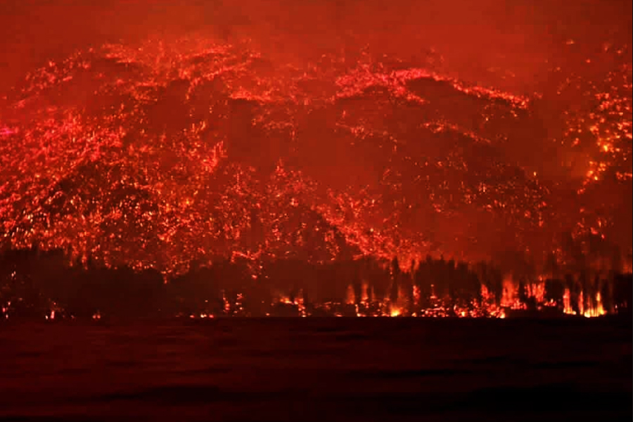 Como una bestia que despierta, el fuego devora todo lo que encuentra a su paso: bosques, casas, silencios. No entiende de límites ni de pausas; crece, y sigue. Las llamas caminan empujadas por el viento, y el paisaje, antes verde, ahora arde bajo un cielo cargado de ceniza.